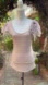 Lara by Lulumari Anthropologie short sleeve embellished light knit Sweater with Floral Appliqué and Feather Embellishments on left shoulder