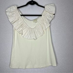 Anthropologie Maeve Tina Ruffled Ribbed Tank Top L