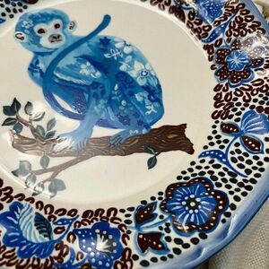 ANTHROPOLOGIE Nathalie Lete Blue Monkey Floral Collector 10" Dinner Plate Art
