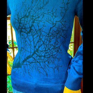 ▪️ANTHROPOLOGIE▪️Ombré Blue Turtleneck Tree Graphic Sweater