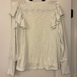 ANTHROPOLOGIE PILCRO Cozy Popover Ruffle Sweater Top Cream Ivory Women’s Small