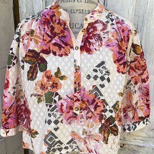 New this year and never worn, a floral print ,cropped, hi low shirt with cropped sleeves.