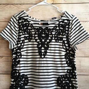 EXCELLENT CONDITION ANTHROPOLOGIE POSTCARD APPLIQUED DRESS IN BLACK AND WHITE