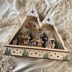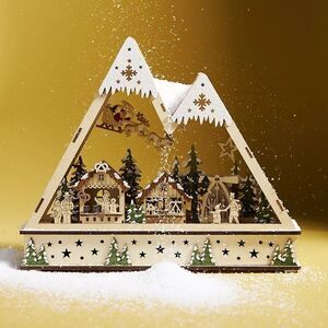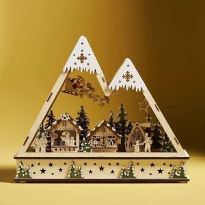 Perfect for an entryway table or mantel, this winter village is crafted to miniature proportions from plywood twinkling with LED lights. Full of festive cheer, it illuminates any home with endless holiday charm.
