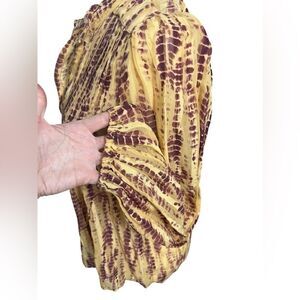 ANTHROPOLOGIE extra small Maritzia Tie-Dye Blouse yellow purple long sleeve