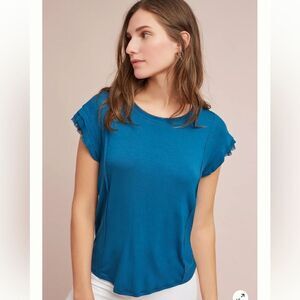 ANTHROPOLOGIE for Dolan Fillipa Chiffon Trimmed Tee blue size XS