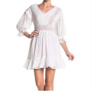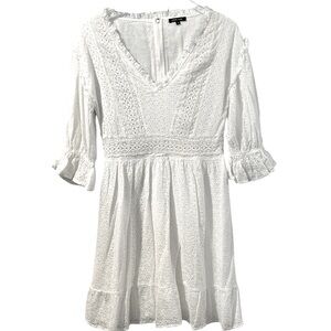 ANTHROPOLOGY LOVE SAM Dress Boho Eyelet Lace Ruffle White Size Medium Like new