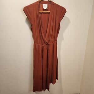 ANTHROPOLOGY Maeve Rust Faux Wrap Dress size XS