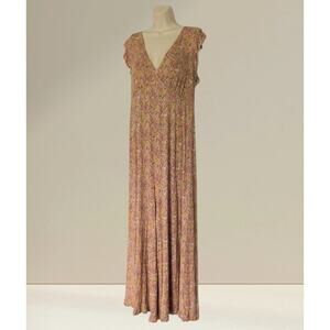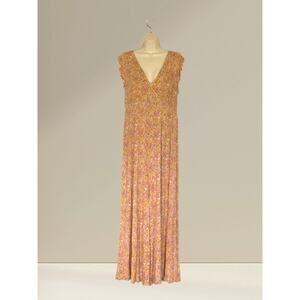 Measurements: Length: 55 inches Chest : 19 inches (pit to pit) The Anthropologie Maxi Jumpsiut Dress is a cozy and slouchy bohemian floral dress made of soft cotton material. It features a V-neckline and a unique tie closure for a relaxed fit. This long dress is perfect for casual occasions or travel, with a multicolor floral pattern that adds a touch of nature and a bohemian vibe to your wardrobe. The brand Anthropologie is known for its stylish and comfortable clothing, making this dress a versatile choice for the summer and spring seasons.