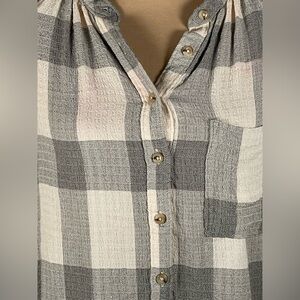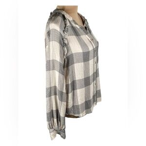 Anthropology ~ Pilcro plaid long sleeve button up top women's sz XS Cream and Gray