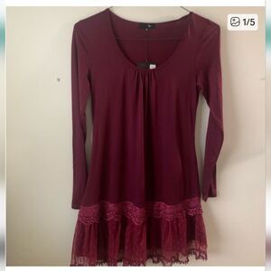 ANTHROPOLOGY Ryu Long Sleeve Maroon Lace Ruffle Trim Dress