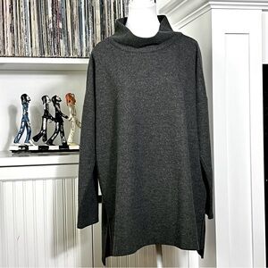 ANTHROPOLOGY Theresa Oversized Mock Neck Tunic Sweater Carbon Gray Sz XL Neutral