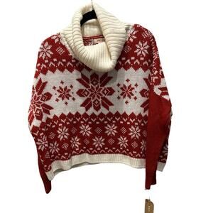Yes Lola Christmas cropped sweater Red white snowflakes says size small but more like XL make sure to see measurements