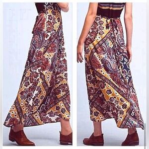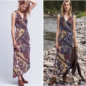 ANTHRO Tiny Mountaire Bohemian-Chic Faux Wrap Paisley Maxi Dress $178. XS