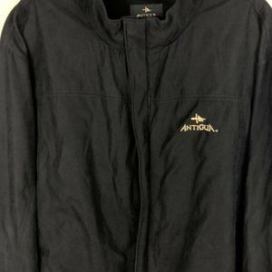 ANTIGUA Full Zip Press Buttons Mens GOLF JACKET Pockets Lined BLACK XL NWOT. Condition is Impeccable !