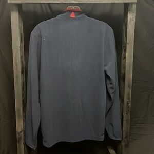 Size small. Navy blue with red trim. Patriot logo on chest. 3/4 zip pullover. 100% polyester. Excellent new condition. NWT