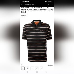 ANTIGUA PHILADELPHIA FLYERS MENS SZ SMALL BLACK DELUXE SHORT SLEEVE POLO SHIRT