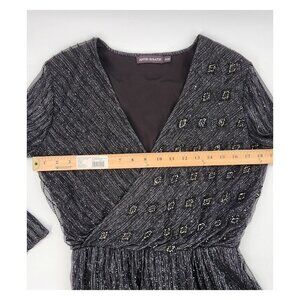 ANTIK BATIK Hayward Cross Beaded Sequin Evening Party Dress - V-Neck - Elastic Waist - Chiffon - Mini - Sheer Long Sleeve - Pockets