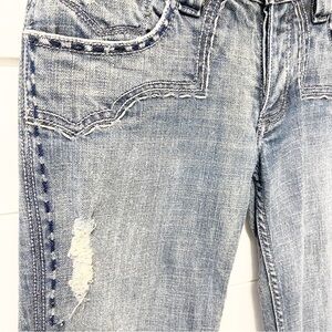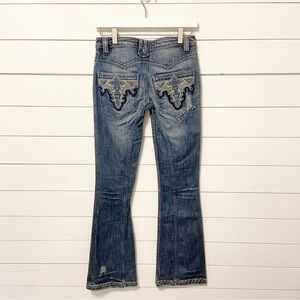 ANTIK Denim | Vintage Y2K Flare Embroidered Pockets Low Rise Made in USA Size 25