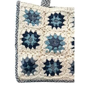 ANTIK KRAFT | Crochet Knit Tote Bag Blue White Granny Square Boho!