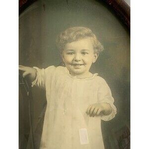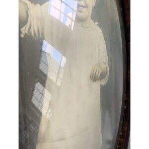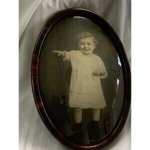 ANTIQUE BABY PRINT OVAL CONVEX PAINTED TIGER WOOD FRAME with CONVEX GLASS Read