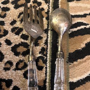 ANTIQUE BRASS AND CRYSTAL HANDLE FORK AND SPOON