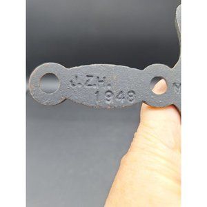 Antique cast iron J.Z.H. 1948 M Alphabet Trivet black with heart design. This trivet is in it's original condition and has not been restored, so it has the patina and rusty areas from years of use. It can be used as a stand for hot foods or displayed on a wall. This classic spade shape trivet measures 8.5" long x 3 7/8" at it's widest point. Please see photos as they are part of the description. Smoke free home. Reasonable offers considered.