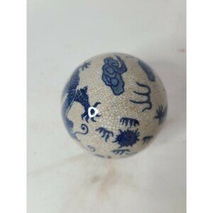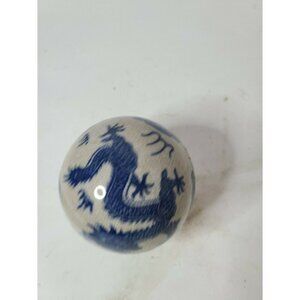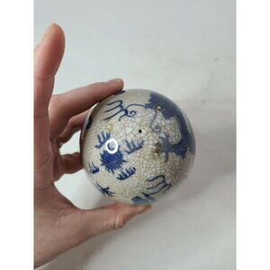 ANTIQUE Chinese Dragon Porcelain Ball Sphere Blue