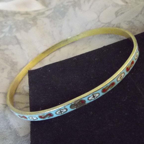 ANTIQUE ESTATE TURQUOISE & RED CLOISONNE ENAMEL GOLDEN THIN BANGLE BRACELET 30