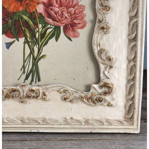 ANTIQUE French Plaster Botanical Frame 8x10 Cream & Gold Gilt early 1800s Unknown maker, French style creamy white plaster with dark gold-brown gilt on inner edge, glass insert over old Victorian floral print