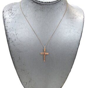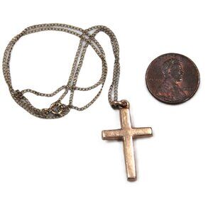 This estate piece is in excellent / original condition. Gold filled cross on a gold filled chain. The chain is 16". Weight: 3.6 grams.