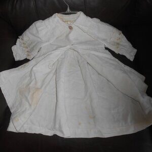 ANTIQUE HANDMADE BABY UNISEX LINEN CHRISTENING DRESS VICTORIAN STYLE CREAM RARE