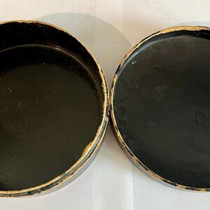 VERY OLD, PROBABLY BOUGHT BY OUR WORLD WAR II SOLDIER WHO WAS STATIONED IN JAPAN DURING PEARL HARBOR. IT'S NOT IN THE BEST CONDITION LOOKS WISE, BUT THE CARVED FLORALS ARE PRETTY. THE SIZE IS 5 1/2 " IN DIAMETER AND 2" IN DEPTH.