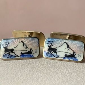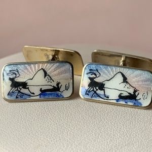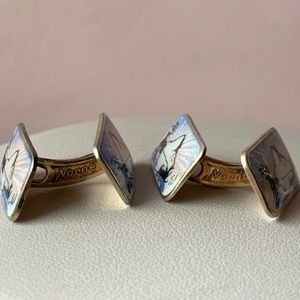 GORGEOUS ANTIQUE CUFFLINKS , IN SOLID STERLING SILVER , STAMPED 925 AND STERLING IN SEVERAL PLACES, ALSO NORWAY. DONE WITH GUILLOCHE ENAMEL, PICTURES ON BOTH SIDE OF EACH CUFFLINK, WINGS ARE SUPER SOLID. THIS IS A ONE OF A KIND ITEM, COLLECTORS DREAM, SORRY, NO OFFERS. VERY UNIQUE DESIGN,ONE OF A KIND,GREAT PAIR OF CUFFLINKS!