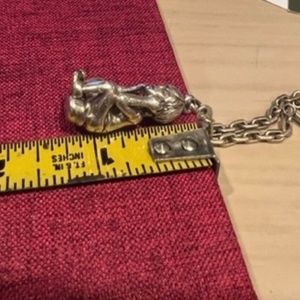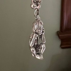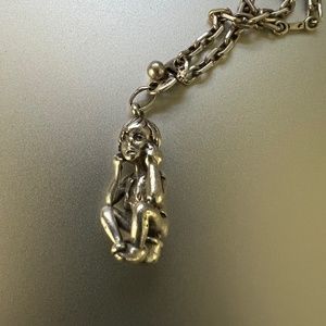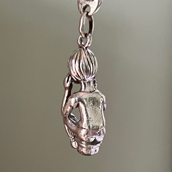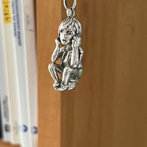Vintage rare sterling silver keyring purchased in Paris in the early 80’s. An intricate sculpture of a little French waif sitting on a chamberpot, thinking - while waiting…