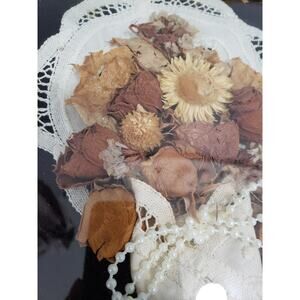 Stunning framed antique floral dried bouquet - measures approx 7.5 x 9.5 inches including the frame. Gently used, some scuff marks throughout, some tiny loose pieces of the flowers have broken off inside the frame. Displays beautifully and meets an eclectic mix of home decor styles
