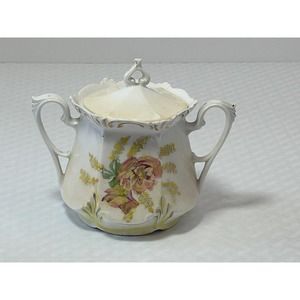 ANTIQUE R.S. PRUSSIA MOLDED SUGAR BOWL WITH ROSES