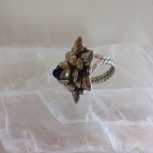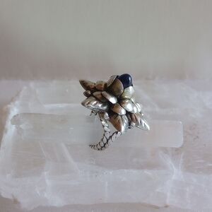 ANTIQUE MEXICO FLORAL RING HAND MADE WITH BLUE CRYSTAL SIZE 8,5