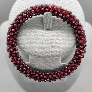 ANTIQUE VINTAGE ART DECO BOHEMIAN GARNET CABOCHON SEED BEAD BANGLE BRACELET GOTH