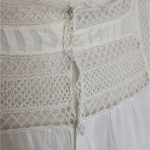 Vintage antique 1920s/1910s lace button up drop waist tea dress/slip dress. There is no size or tags on this but it is in great condition for its age. Some small patches, holes, spots. Nothing has been treated. All buttons are original to garment. Beautiful piece! Shown on a size small mannequin, but has very small arm holes, may be childrens but not sure.