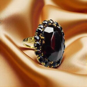 ANTIQUE- 10k Gold Bohemian Garnet Ring -Size 8- 7cttw Edwardian Cluster Ring -7g