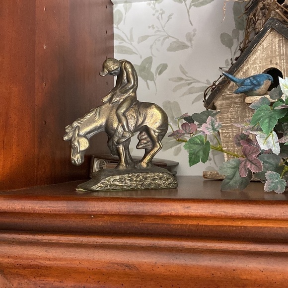 ANTIQUE~BRASS PLATE~CAST IRON STATUE~’THE END OF THE TRAIL of TEARS’~by JAMES EARLE FRASER~PAIR BOOKENDS~RELIEF DETAIL & PATINA~SOLID & HEAVY PIECE~HEAVY~FELT ON BOTTOMS
