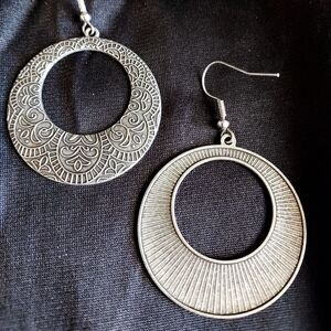 ANTIQUE SILVER BOHO ROUND DANGLE EARRINGS