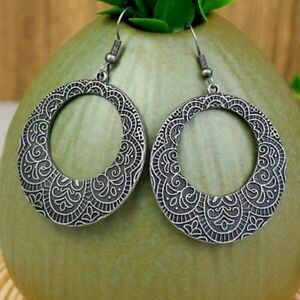 Attractive Antique Silver Bohemian Round Dangle Earrings