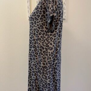ANTISTAR~ Women’s Animal Print T- Shirt Dress V-Neck Loose fitting Rolled sleeve