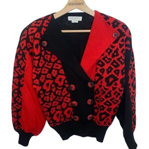 Antonella Preve Vintage Women's Red Black Wool Blend Sweater