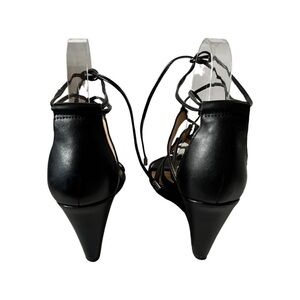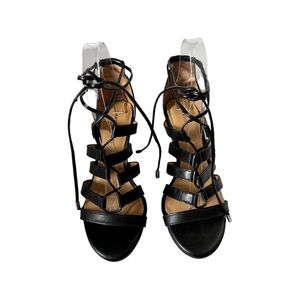 ANTONIO MELANI Adair Lace Up Black Leather Wedges Sandal Size 7