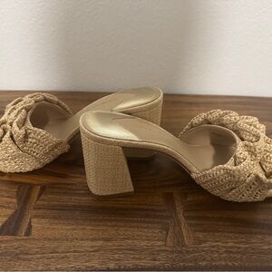 ANTONIO MELANI Beige Ruffle Block Heels