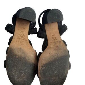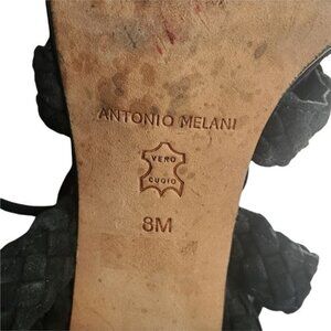 ANTONIO MELANI Block Heel Sandals SZ 8 Leather Round Open Toe Strapy Braided 4"