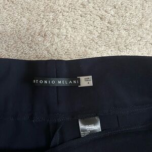 This sophisticated blue pencil skirt by ANTONIO MELANI is designed for a polished work look. Its knee-length cut and fitted silhouette offer a sleek and professional appearance. Crafted from a structured fabric, it ensures a flattering fit and timeless style.